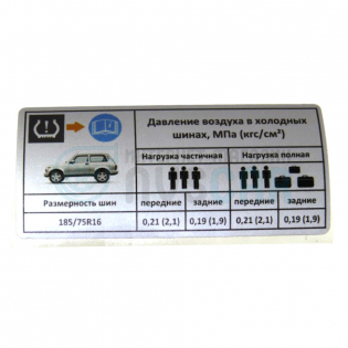 4055Наклейка информационная о давлении шинКожДизайнАвтоЛада Нива (ВАЗ 2121) 3-х дверная, Лада Нива 4x4 (ВАЗ 21213-214) 3-х дверная, Лада Нива 4x4 (Урбан) 3-х дверная, Лада Нива (ВАЗ 2131) 5-дверная, Лада Нива 4x4 (Урбан) 5-дверная, Лада Нива Legend, Лада Нива 4x4 ПикапКаталожный номер4055Компонент автоаксессуаровНаклейкаКомпонент кузоваНаклейка информационная о давлении шинПроизводительКожДизайнАвтоПод заказ 2-4 рабочих дня - Наклейка информационная о давлении шин Лада Приора седан (pg4048)Скидки