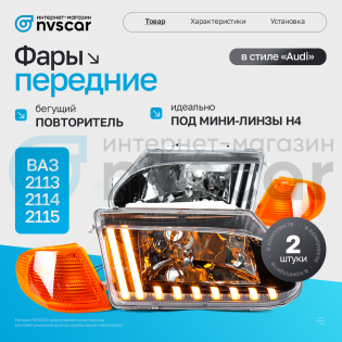 ВАЗ 2113, ВАЗ 2114, ВАЗ 2115Ledpro-tlt г. ТольяттиТип освещенияПередние фарыМарка и модельВАЗ 2113, ВАЗ 2114, ВАЗ 2115ПроизводительLedpro-tlt г. ТольяттиЦокольH4В наличии - Фары передние в стиле "Audi" ВАЗ 2113, 2114, 2115 (белый повторитель)НовинкаХит продаж